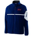 * 90% polyester/10% spandex, 4-way stretch woven fabric * Woven label * Front zipper with reflective zipper pull and matte tips * Contrast color sleeve pocket with silver media port and reflective metallic silicone welded zipper * Raglan sleeves for maximum mobility * Locking welt front pockets * Dual inside pockets * Spandex bound cuff * Open bottom with adjustable elastic hidden drawcord * Water-repellent